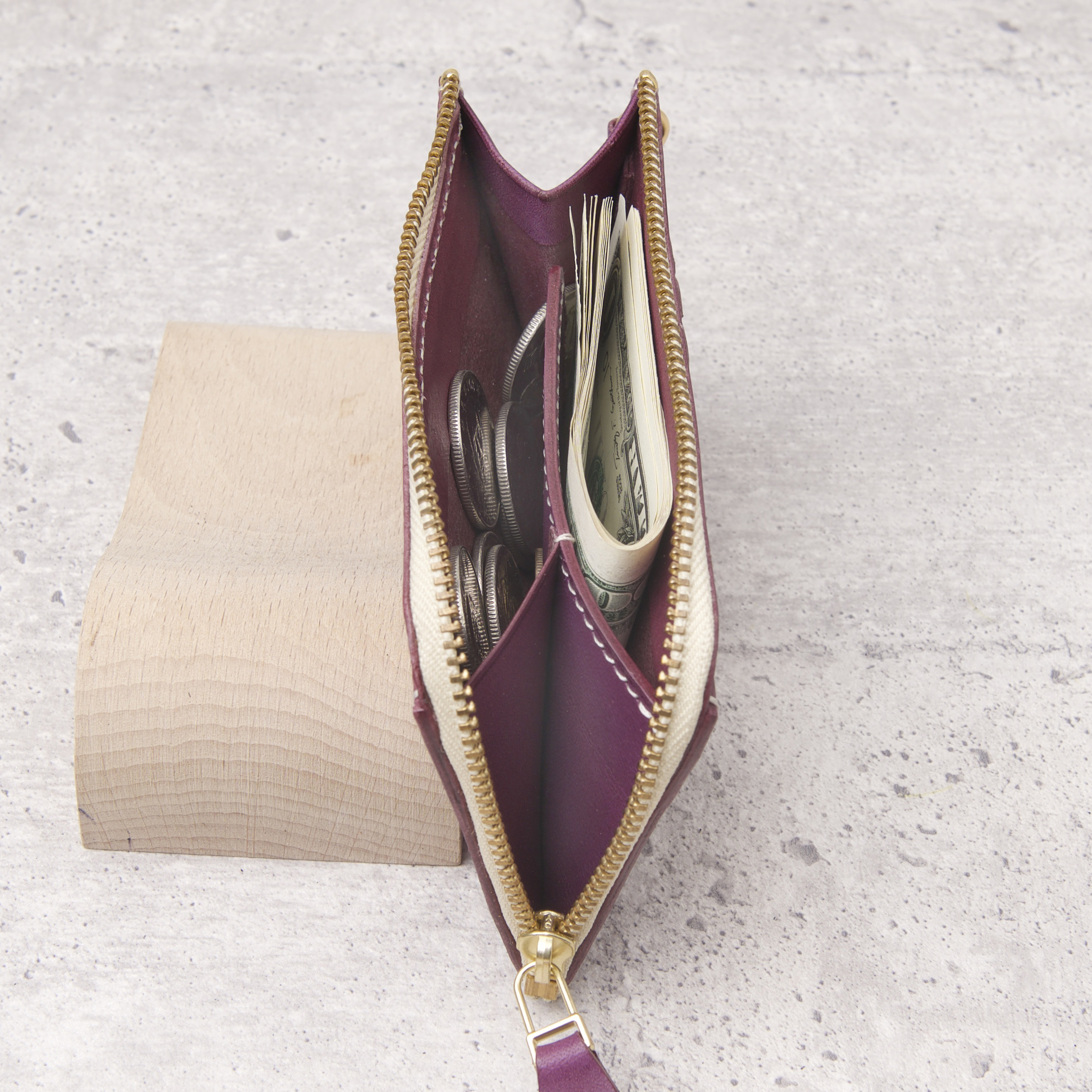 小巧的外型卻具有意想不到的空間感,L型拉鍊卡夾運用質感植鞣革製作,並且盡可能地將皮革削薄減輕重量感。功能上在外側不僅有4個卡片位,二側夾層也提供收納空間,可以放置發票單據或者卡片,外側共可放6張卡片滿足基本使用需求。內側風琴夾設計大幅增加擺放空間,中間增加隔板設計讓空間一分為二,可以將鈔票、零錢、卡片分開放置,使用上會更加順手,功能齊全也可以當成小皮夾,再配上精緻的手掛繩使用起來更加方便。