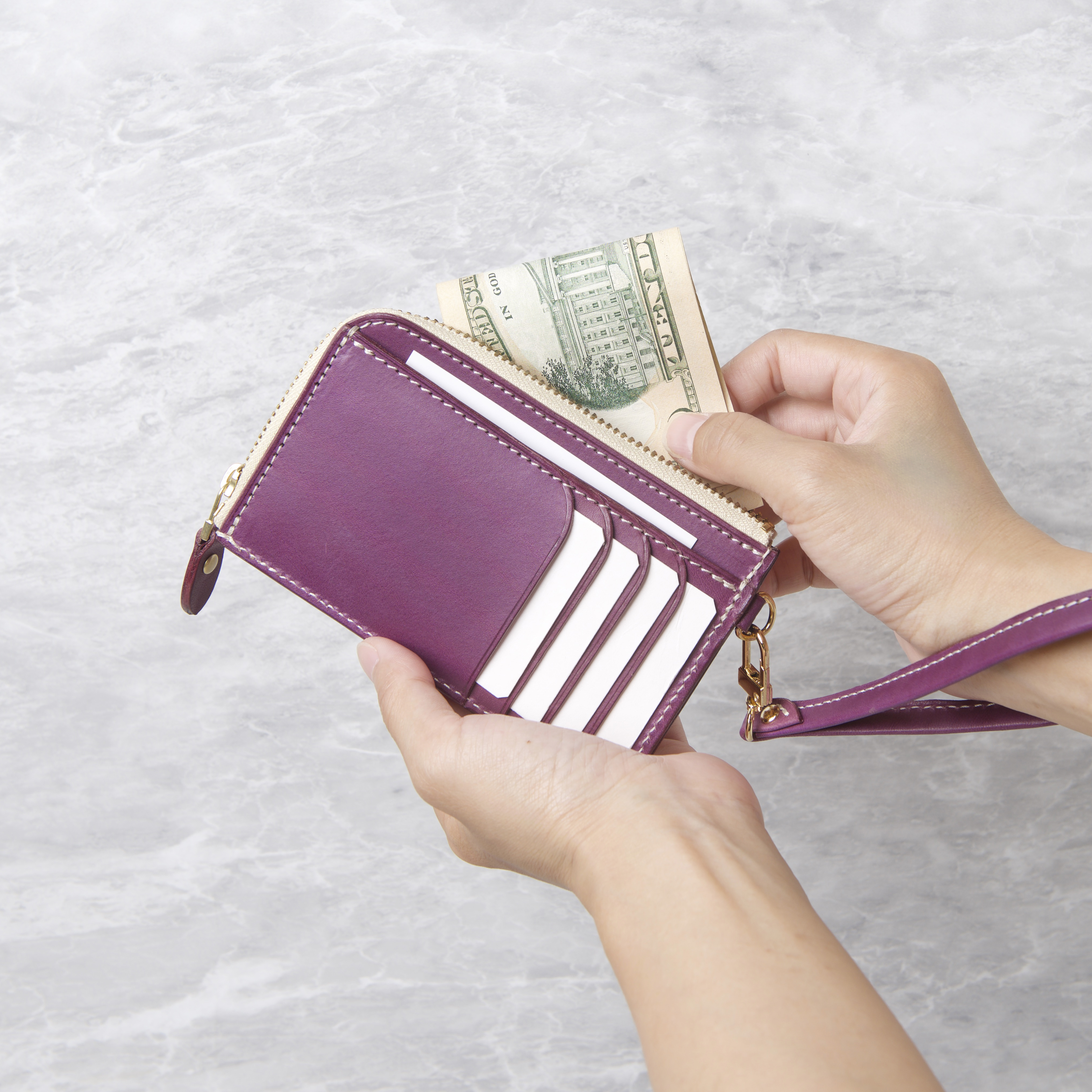 平時出門帶著手機及錢包是件很平常的事,但有時一隻手要拿手機、同時又要拿錢包,買個東西手忙腳亂,因此為了增加使用的方便性,L型拉鍊零錢卡包會搭配一條長度約19公分 (不含金屬釦)的手掛繩,來解決這個簡單又惱人的問題。