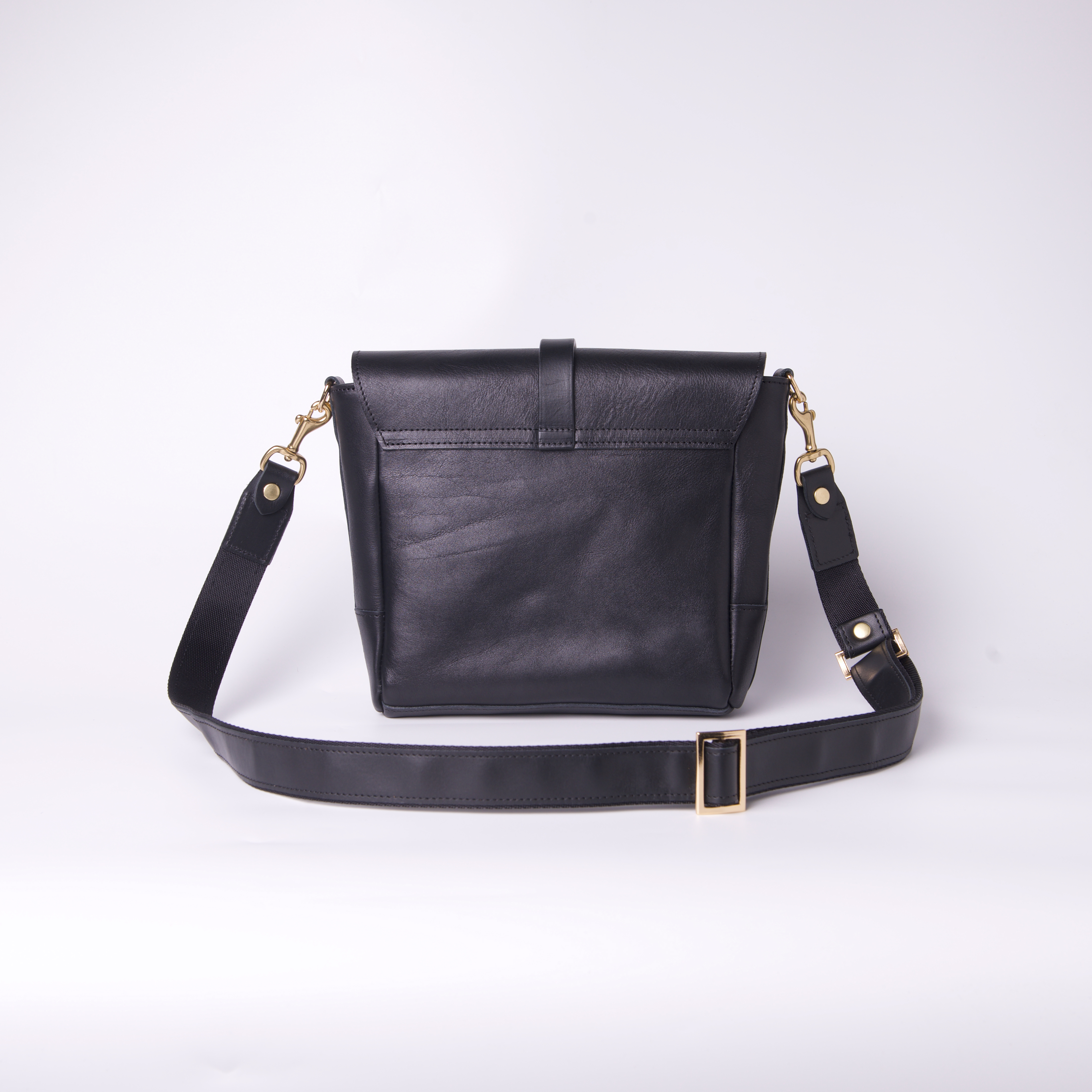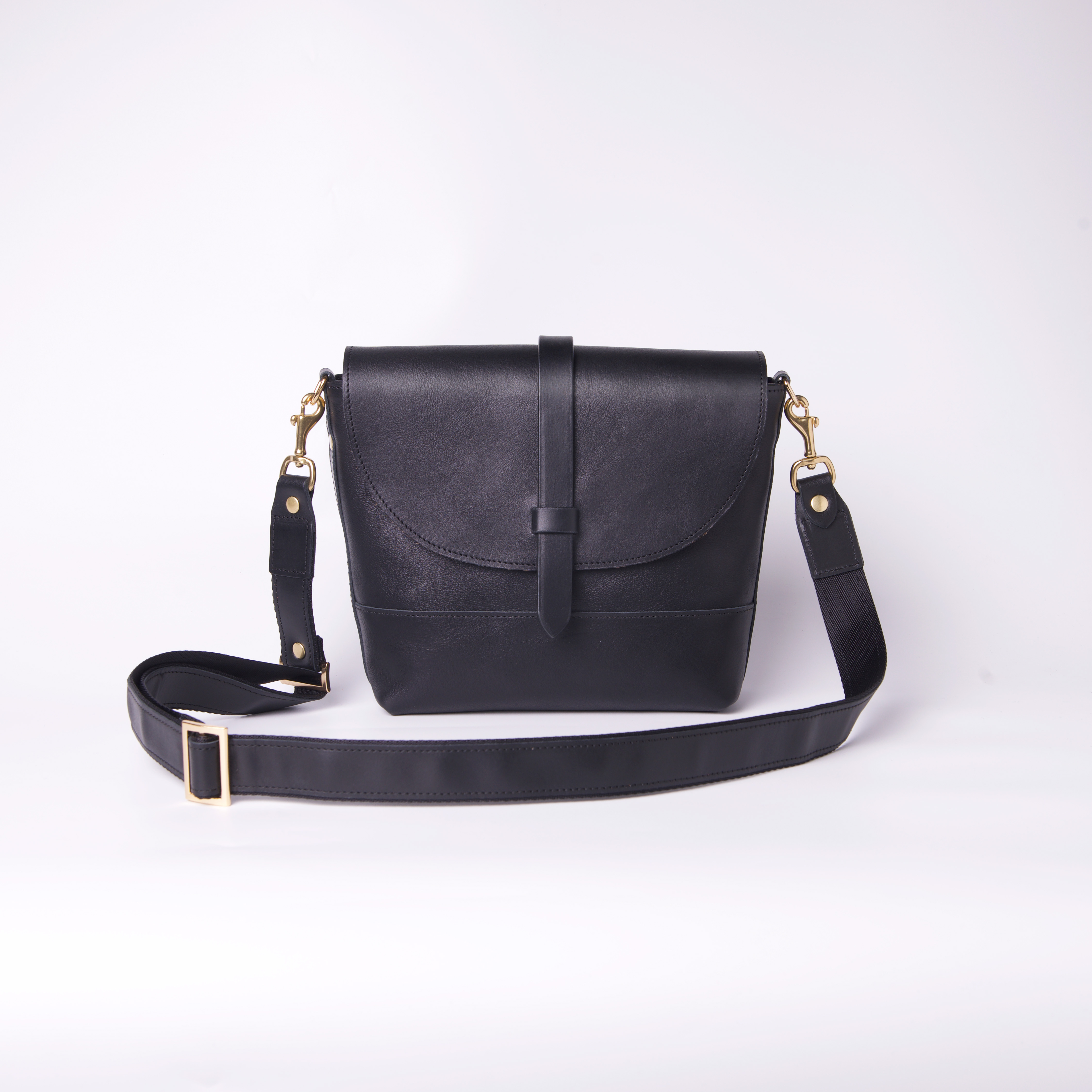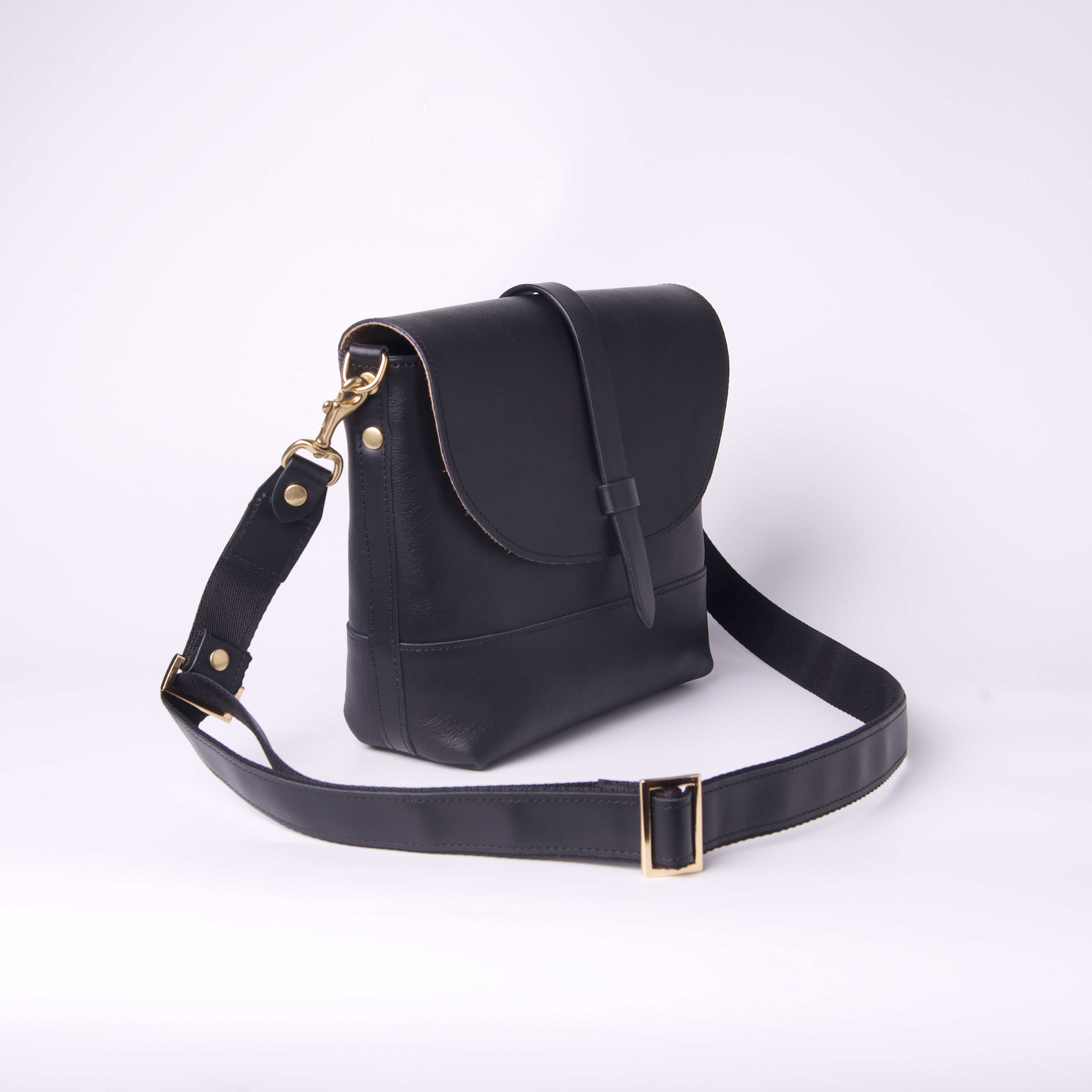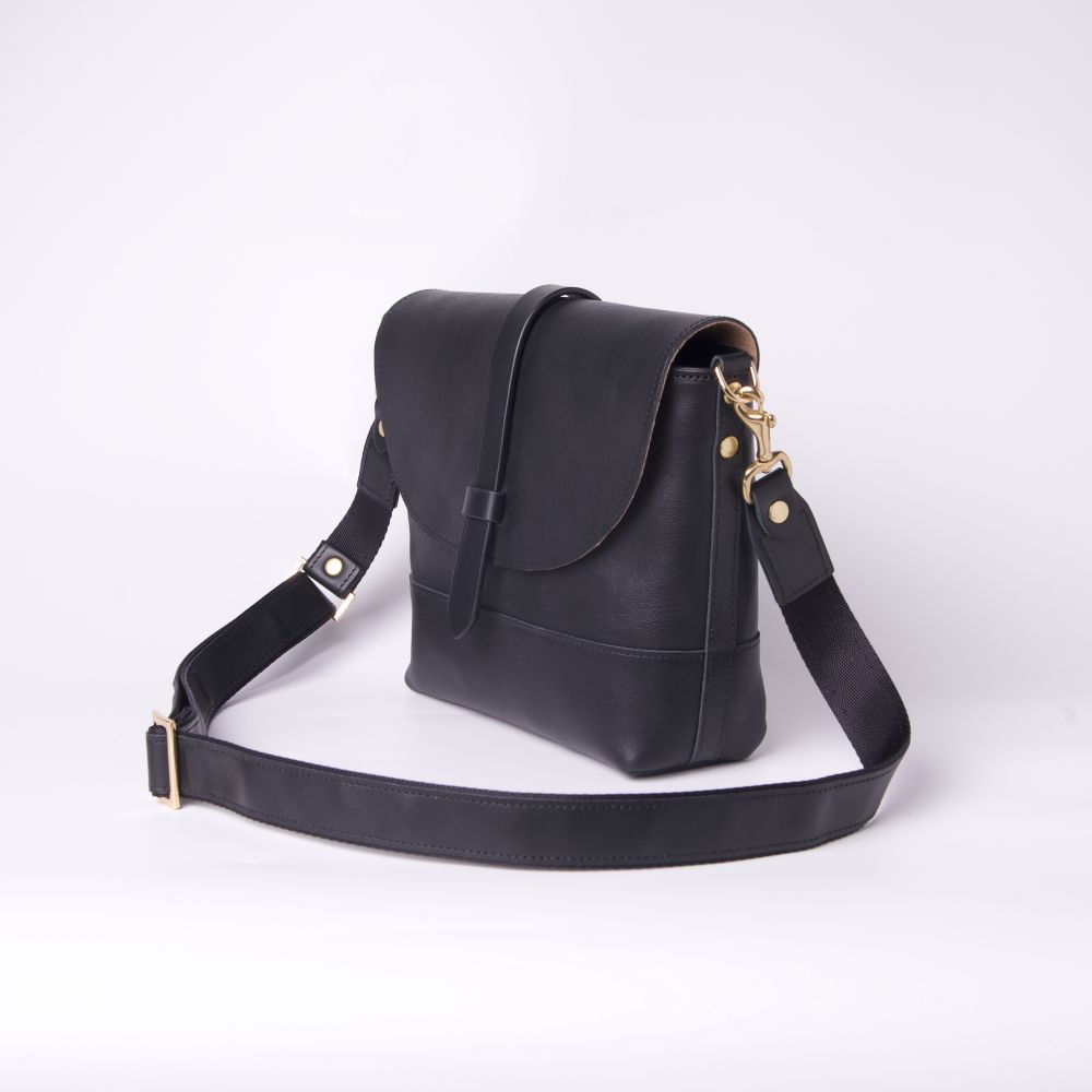 在側背包能容納多種物品的同時,我們開始思考如何減輕使用者肩膀負重,設計師以皮革搭配尼龍織帶作成可調整式的側背帶,相對於全皮革背帶而言重量減輕了不少,尼龍織帶不僅質輕、耐磨、舒適度佳,同時也降低使用者配戴期間的肩膀負荷使其更加舒適輕鬆。