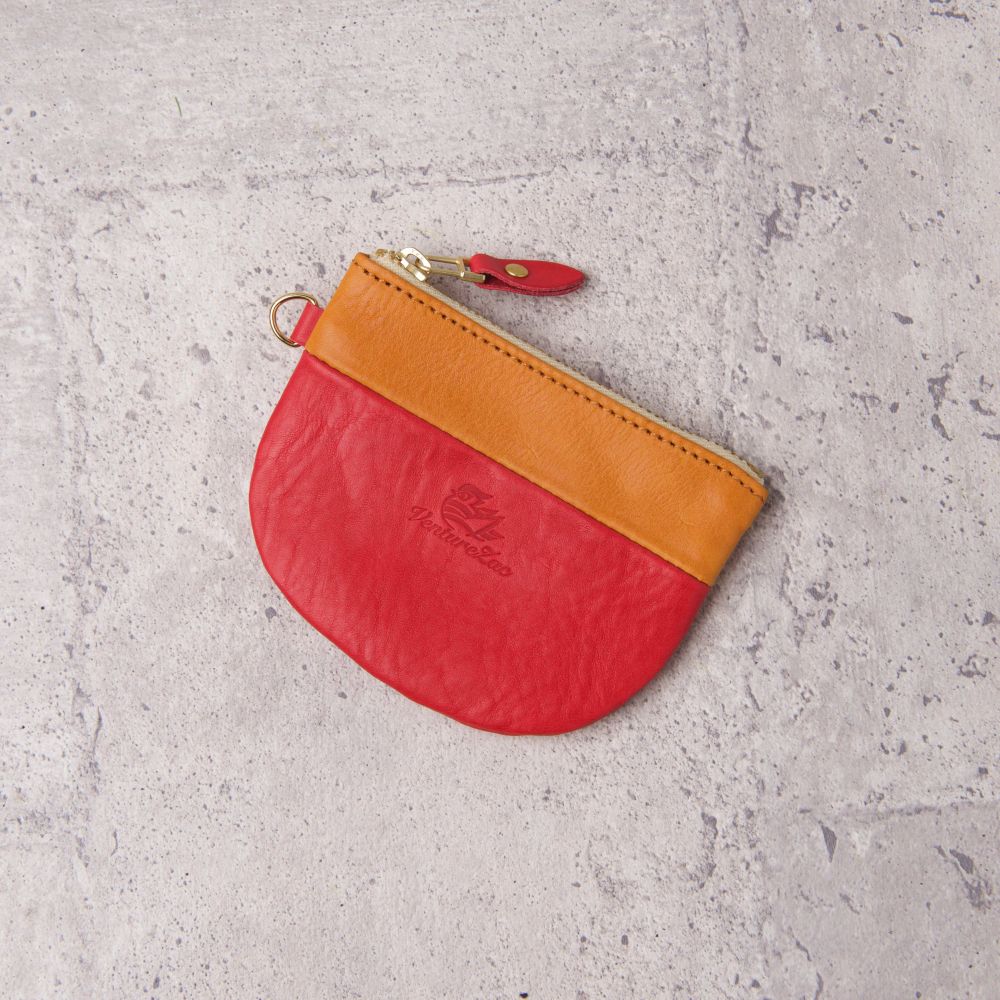 設計師刻意將淺棕色與紅色皮革做成搭配,以巧妙的拼接技術製作成這一款撞色錢包,在顏色上形成較大反差,並且為視覺增添些許的樂趣。如同威士忌越放越醇的特性,軟植鞣革隨著使用的時間越長,顏色稍稍加深且越顯光澤,它的手感與質感將令人愛不釋手。